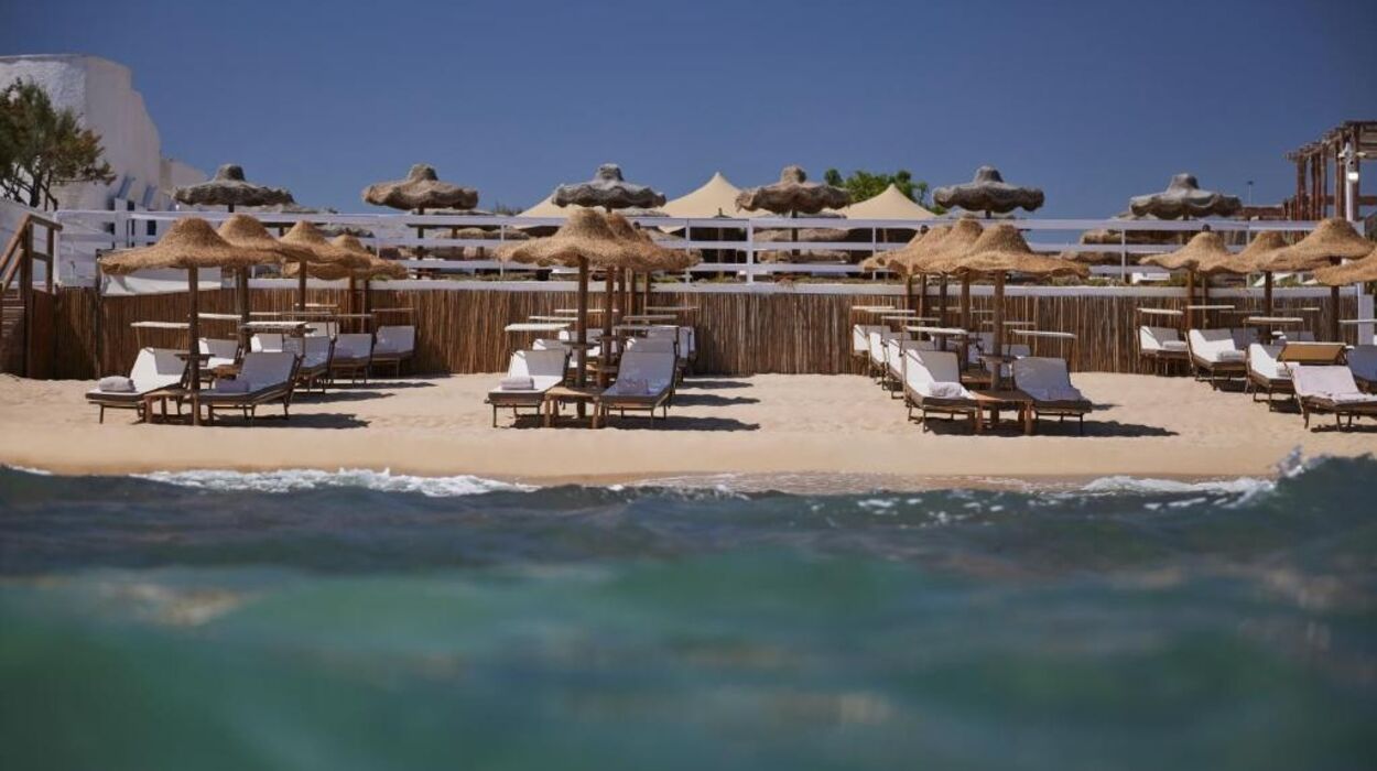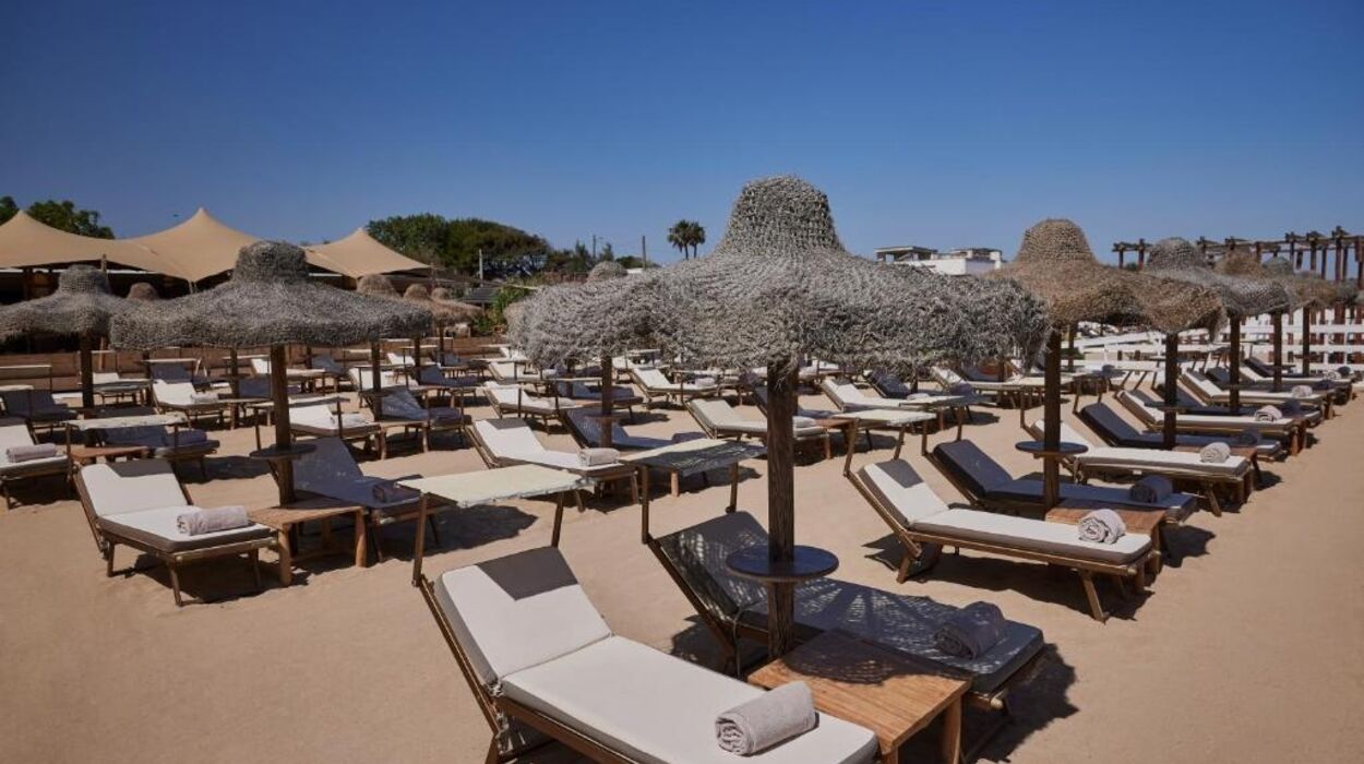 La piscine extérieure est entourée de pergolas et de transats confortables. Une navette vous conduit au beach club privé à Capitolo, pour une journée exclusive entre sable, mer et service raffiné.