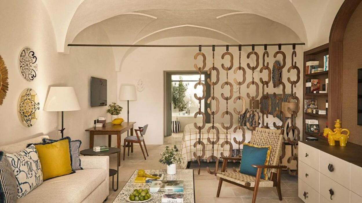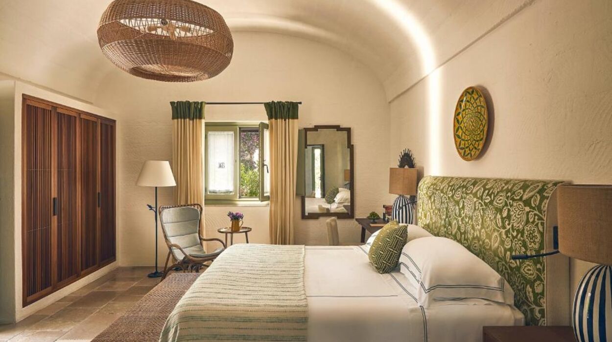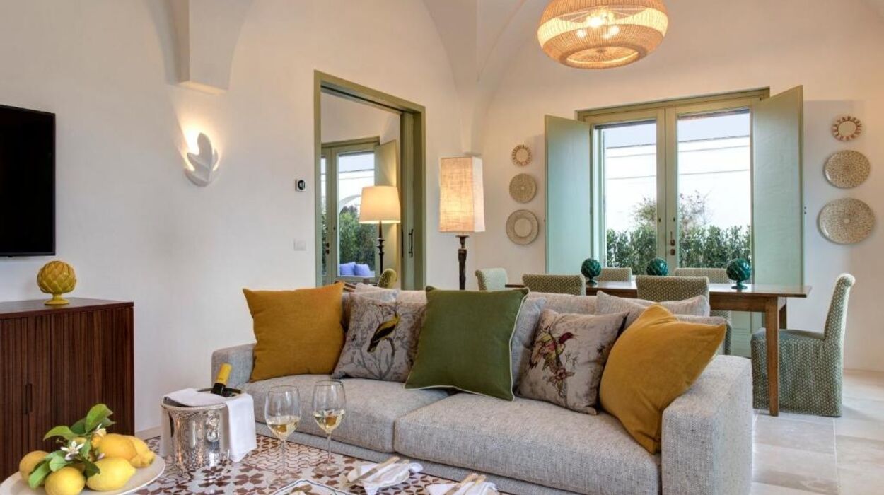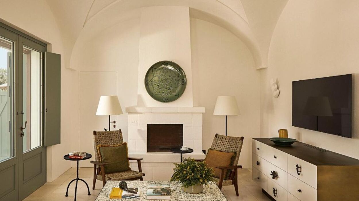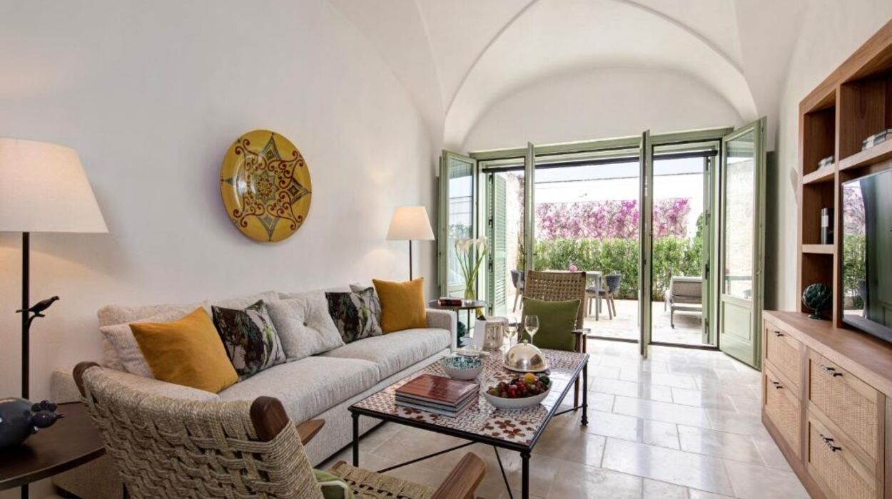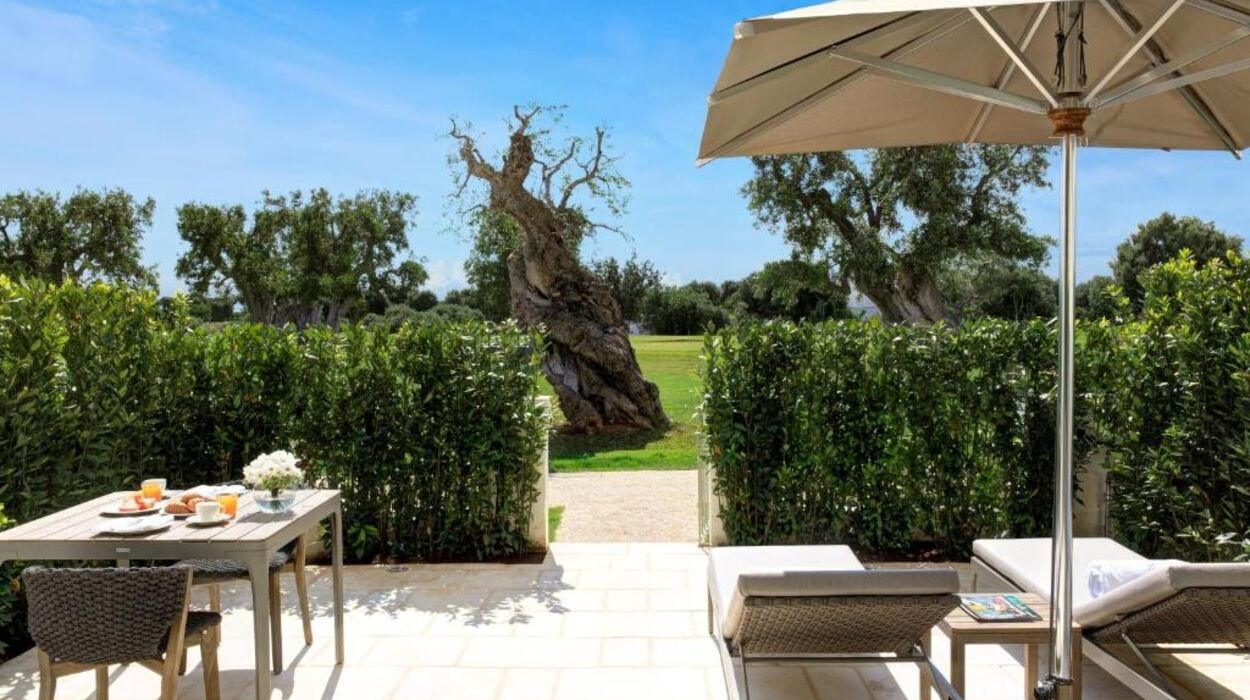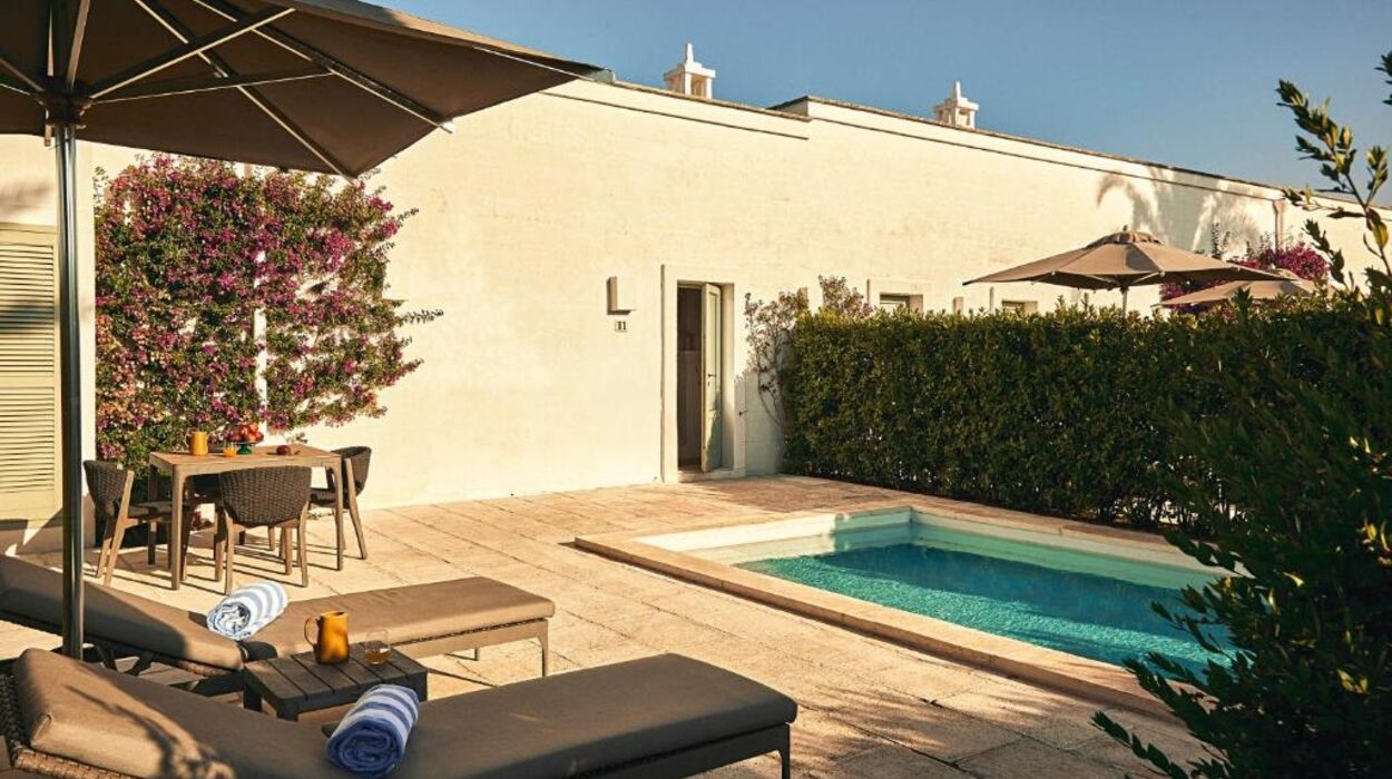 L’hôtel propose des chambres et suites raffinées ainsi que le nouveau « Borgo degli Ulivi », composé de villas privées avec jardin et piscine. Les suites Torre, aménagées dans l’ancienne tour de guet, offrent une vue imprenable sur la campagne des Pouilles.