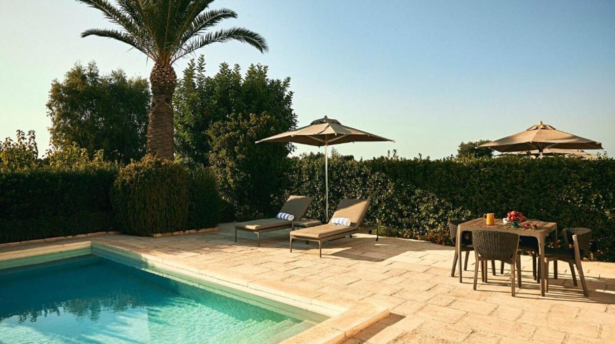 Le spa Irene Forte mise sur le naturel et le luxe : soins bio-cosmétiques, salle de fitness, et piscine extérieure ombragée par les oliviers. Une atmosphère sereine, pensée pour le repos du corps et de l’esprit.